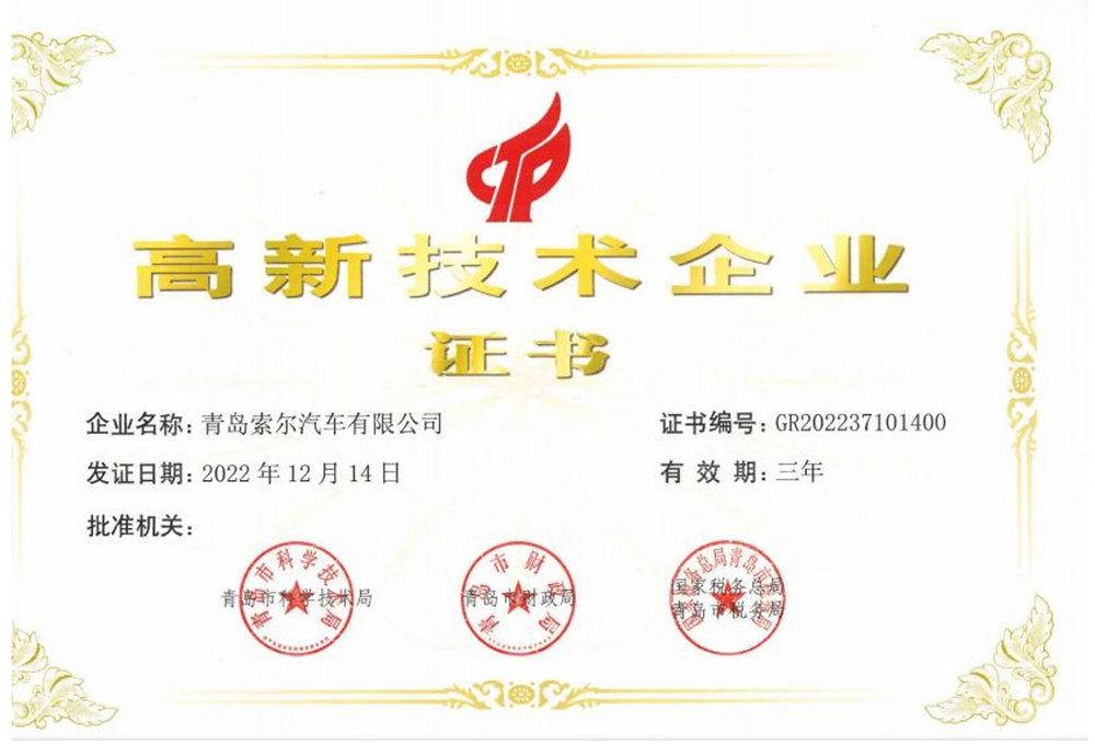青島索爾汽車有限公司 產(chǎn)品碳足跡證書 公示